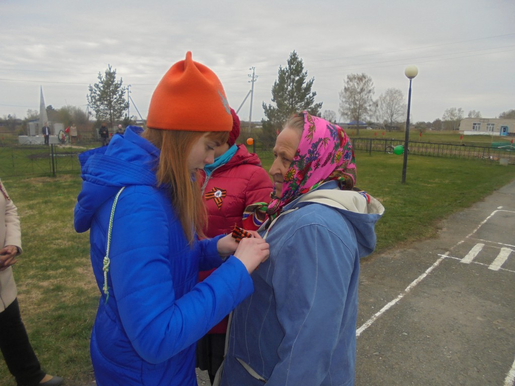Ребята прикрепляли Георгиевскую ленточку и значок «Я помню! Я горжусь!»– условный символ военной славы к одежде жителей и гостей , публично демонстрируя свое уважение к воинам, сражавшимся за Отечество, всенародную гордость за Великую Победу.