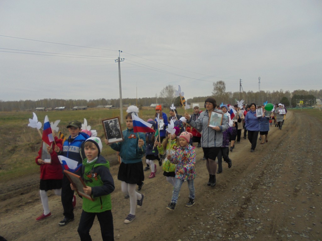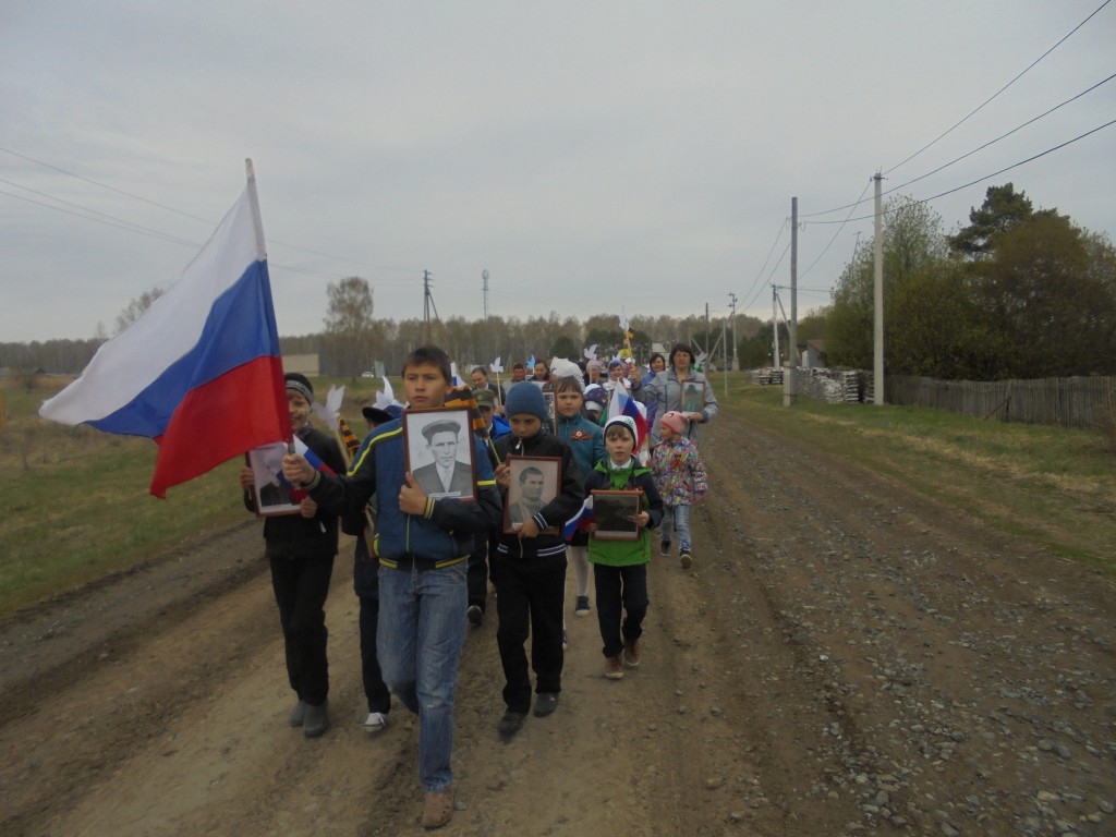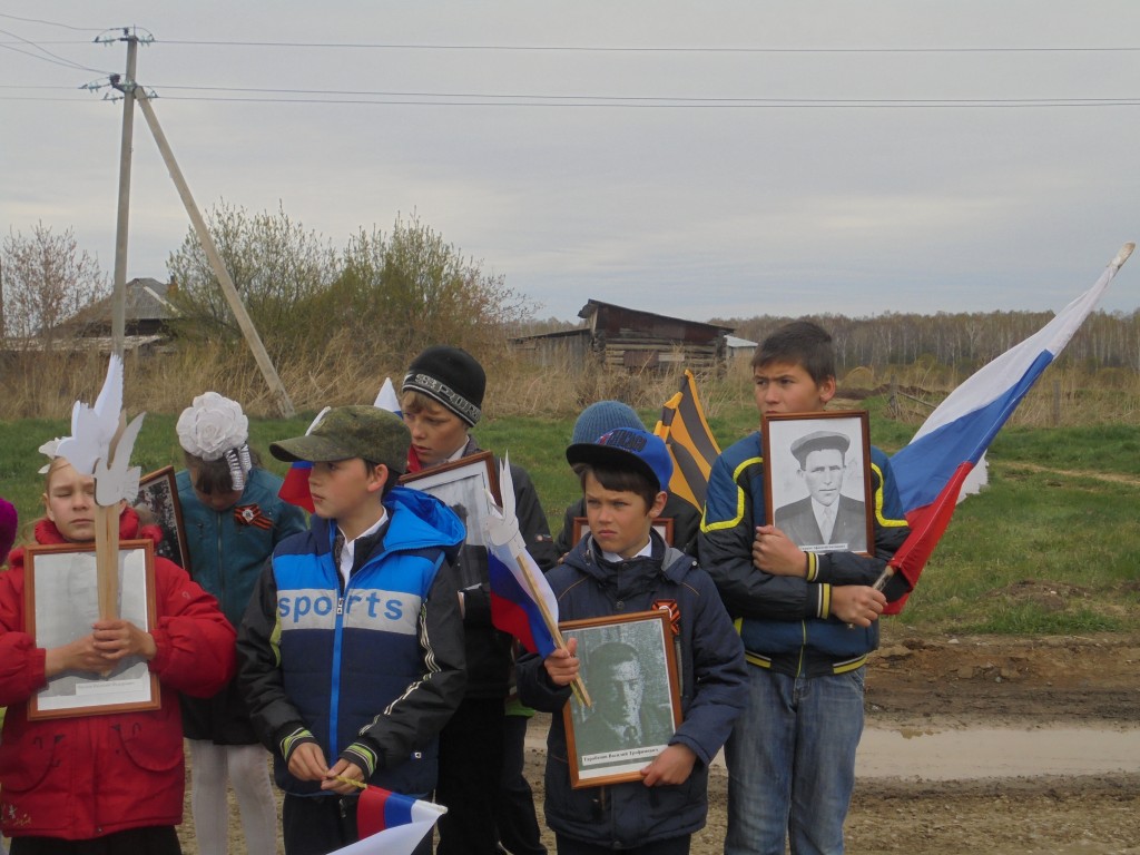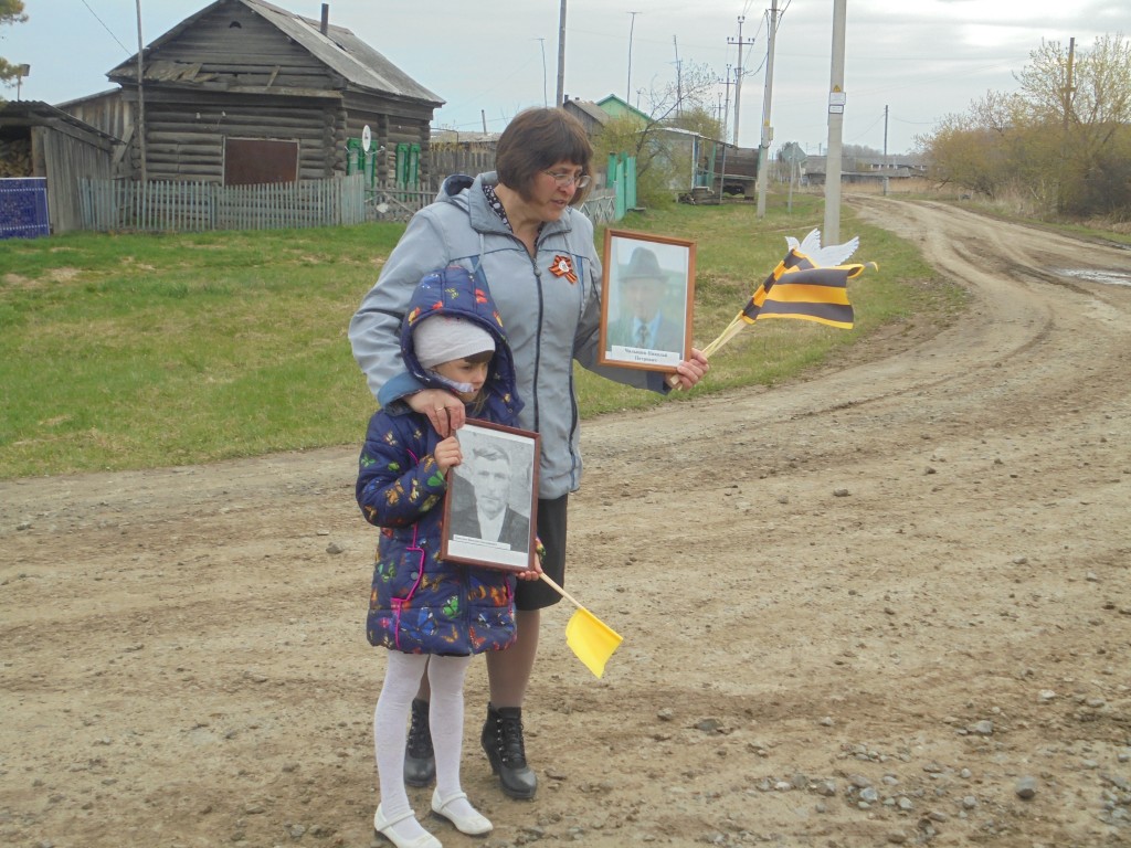 По улицам села прошла колонна «Бессмертного полка» – торжественного парада, участники которого несли портреты своих родственников из поколения Великой Отечественной войны.