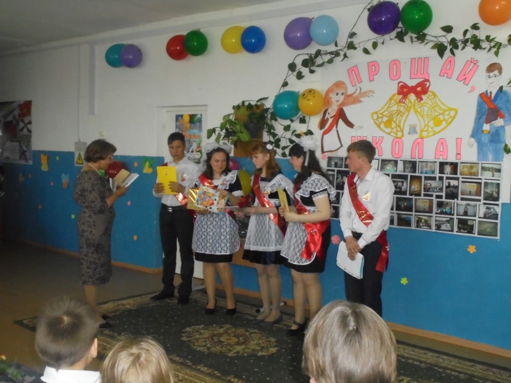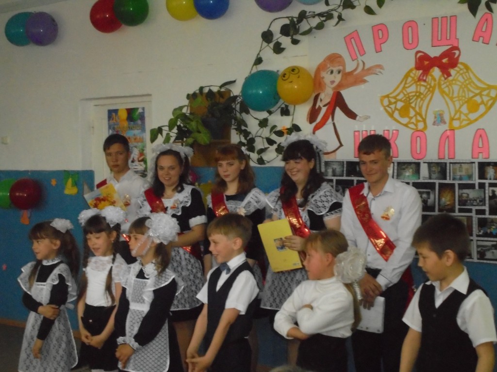 Торжественное поздравление выпускников представителем администрации Лемешкиной О.П, заведующей филиалом Дёминой Е.А., главой поселения Полонкоевой Л.А , директором ДК Аркановой И.А. ,напутствия учителей, которые за столько лет, проведённых в школе, стали почти родными, трогательная речь родителей и ответные слова не менее взволнованных выпускников. И, конечно же, напутствие и поздравления первоклассников, с некоторой завистью смотрящих на выпускников, кажущихся им такими взрослыми и самостоятельными.