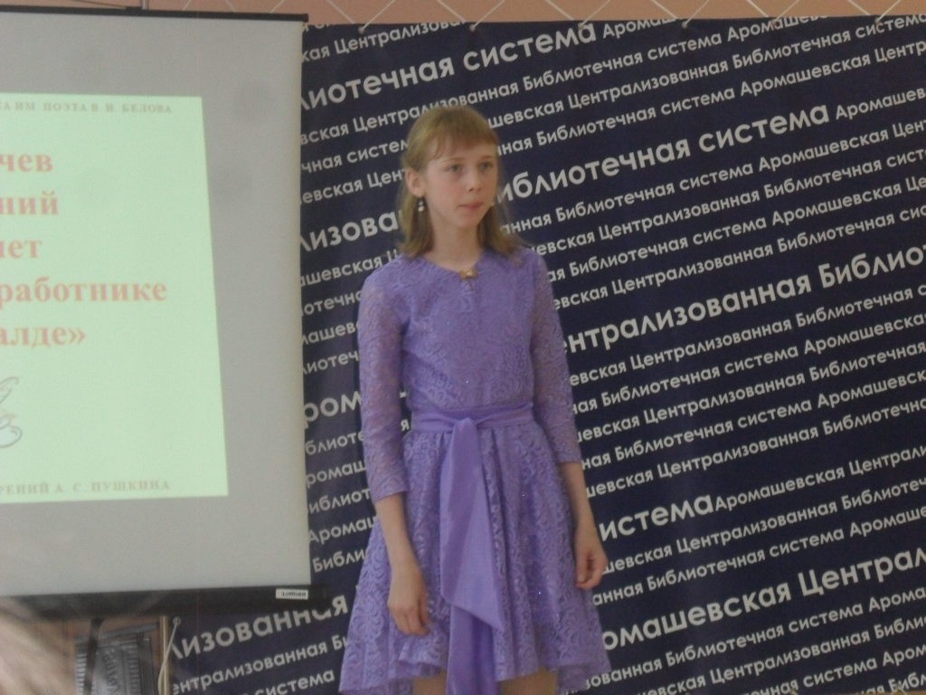И по традиции, с целью популяризации его творчества и сохранения литературного наследия, в Пушкинский день России, Аромашевская центральная библиотека имени поэта В.И. Белова провела районный конкурс чтецов стихотворений великого поэта «Пока в России Пушкин длится…»