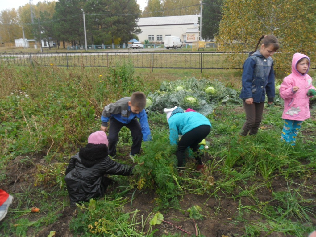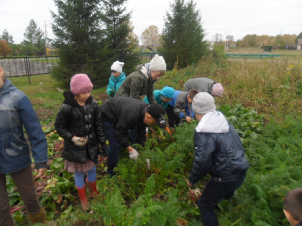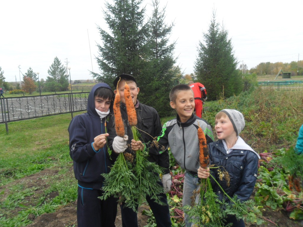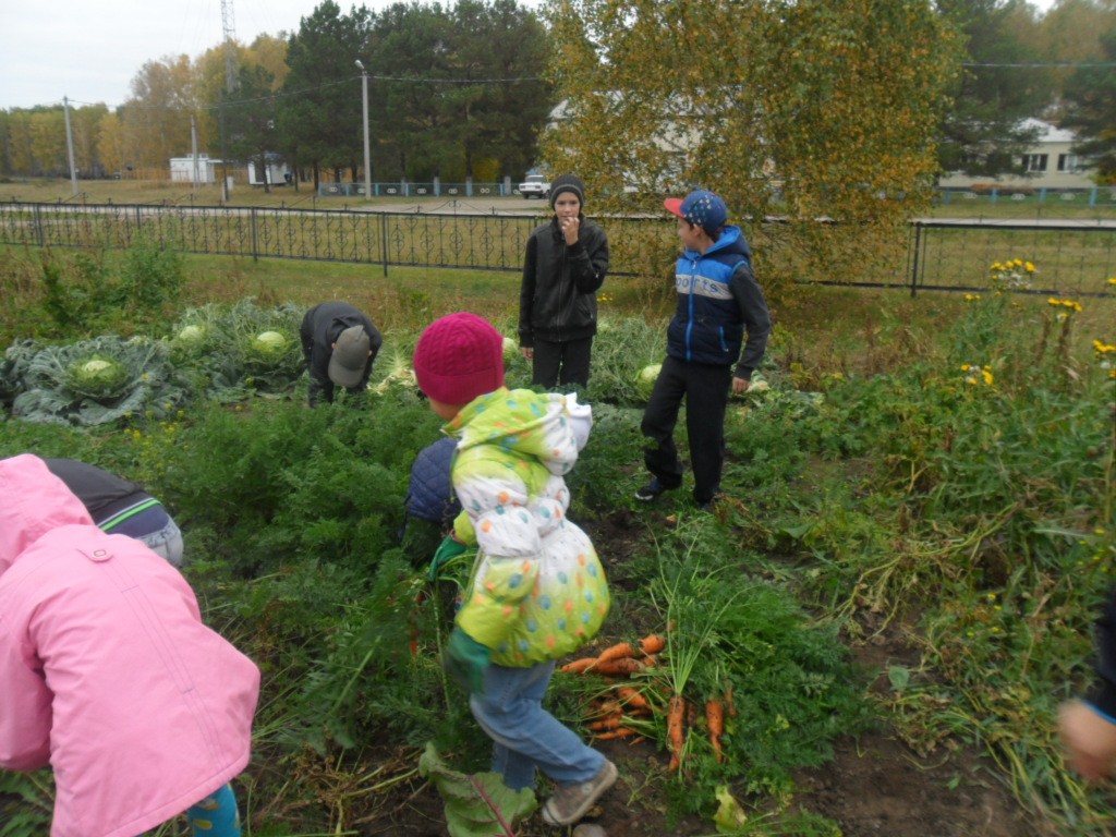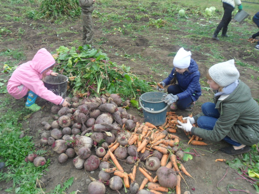 Сегодня мы трудились на пришкольном участке, собирали выращенный нами урожай – картофель, свеклу, морковь, капусту, чеснок,лук. На протяжении летних каникул учащиеся по очереди ухаживали за посадками : занимались прополкой, поливом, прореживанием растений .Овощи отправлены в хранилище ожидать своего часа для вкусных борщей и салатов.