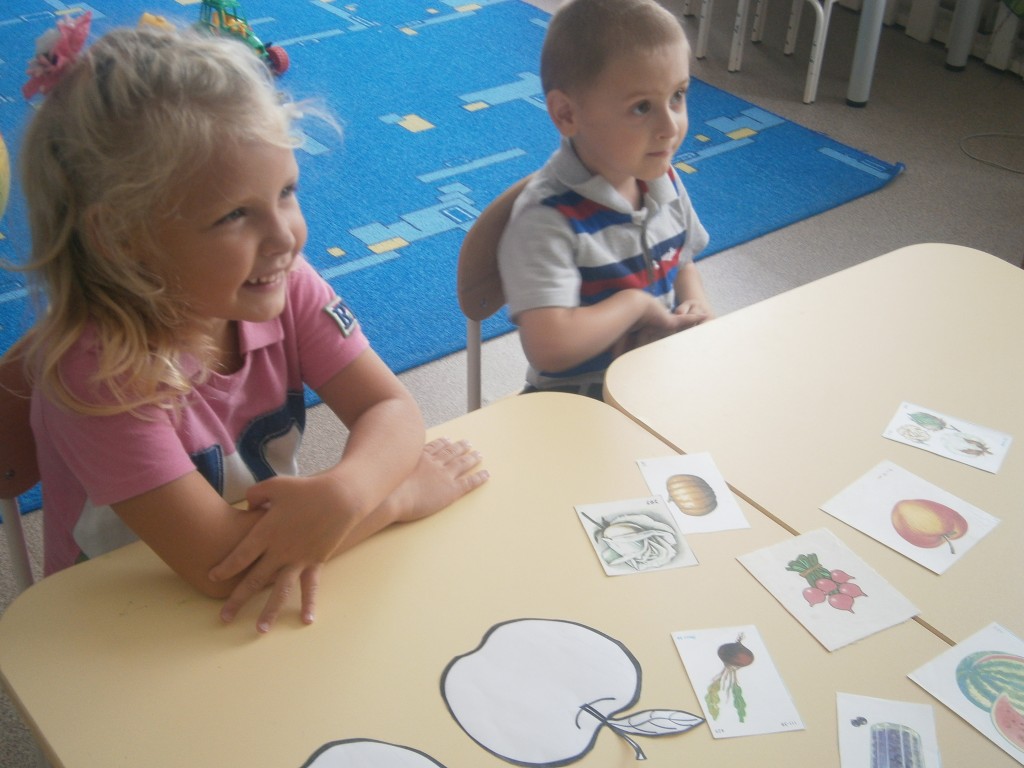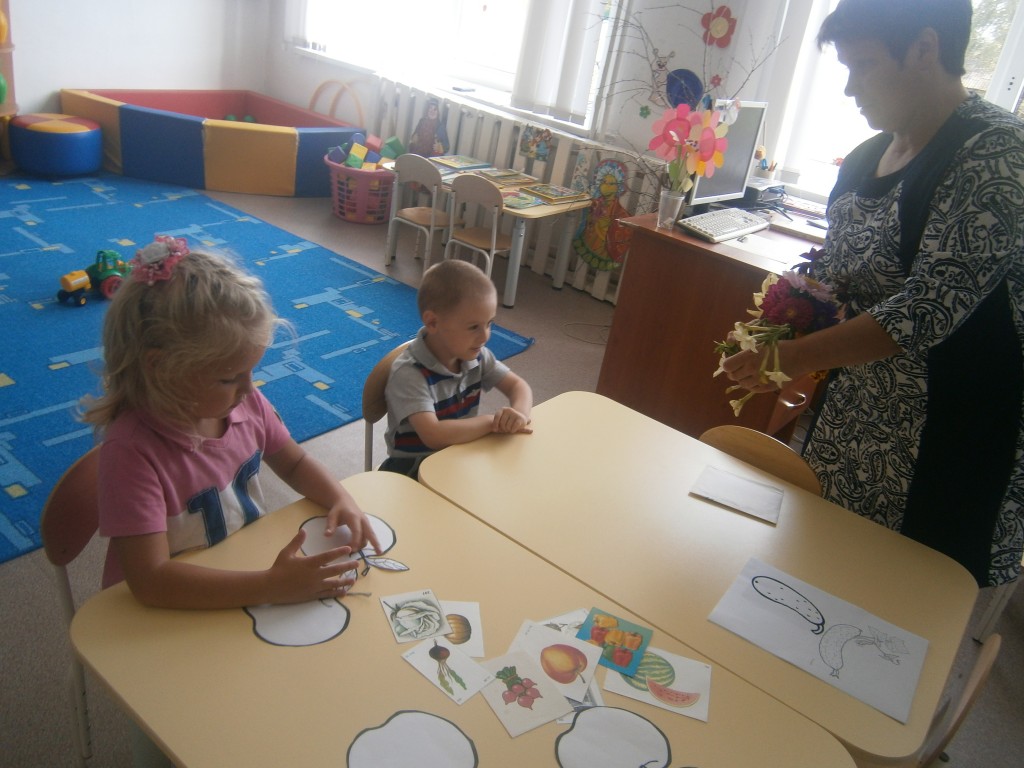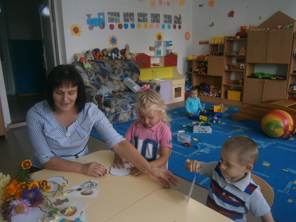 Вот и пролетело так быстро долгожданное лето. Наступила осень и дети вновь пошли в школу. 14 сентября для самых маленьких детишек, посещающих группу кратковременного пребывания «Филиппок» специалисты местного Дома культуры подготовили и провели игровую программу «Собираем урожай». Самая старшая Алена. Она быстрее всех отвечала на вопросы. Не отставал от нее и Кирилл. Он без ошибок называл овощи и фрукты, нарисованные на карточках. Самый младший – Данил — увлеченно играл новыми игрушками. Ребята по – своему объясняли, какое сейчас время года. Алена рассуждает: «Сейчас осень. Сегодня хорошая погода, а недавно был дождь, и я пришла в школу в такой «штучке»( я забыла как она называется), это еще называется — защита от дождя». Воспитатель Наталья Александровна подсказала, что это дождевик. Дети называли цветы, были внимательны. Понравились им раскраски, оказалось, что они очень любят рисовать. С удовольствием сфотографировались.