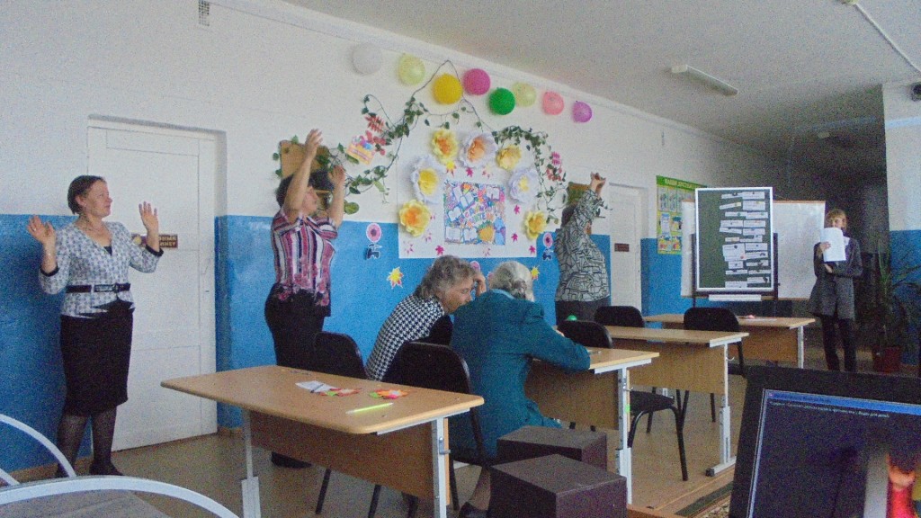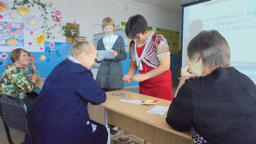 Далее всех учителей пригласили на урок «Школьный день наоборот». Кто из школьников не мечтал поменяться местами со своими учителями хотя бы на один урок! День учителя – прекрасная возможность ученикам попробовать себя в качестве педагогов, а педагогам снова вернуться в детство. Строгая учительница предложила классу непростые задания.
