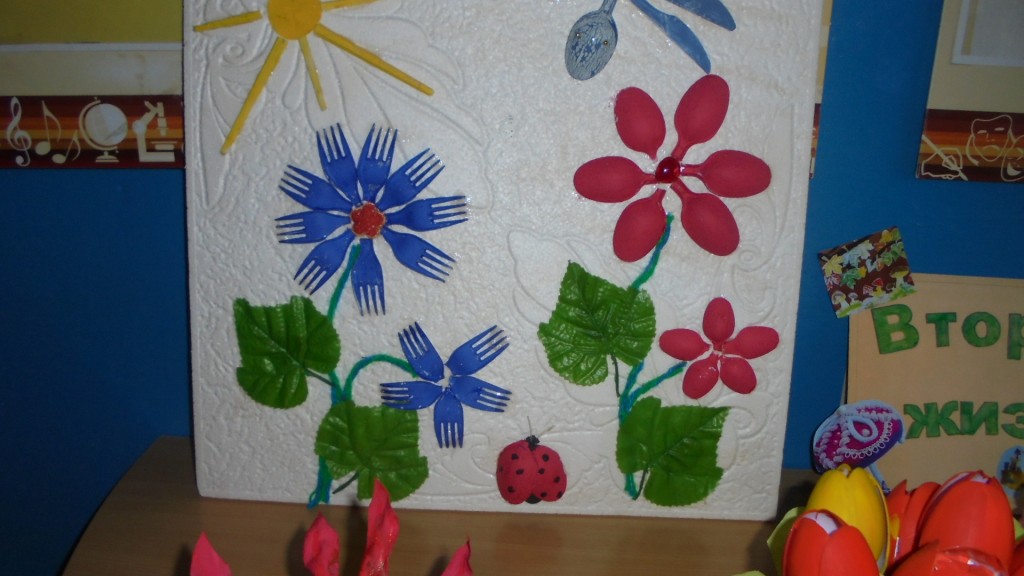 На этой неделе дети и родители выполняли работы из бросового материала для участия в конкурсе «Вторая жизнь». Основной целью мероприятия было: создание условий для сохранения чистоты в окружающей среды, чему способствовало превращение ненужных вещей, которые могли оказаться на помойке — в произведения искусства: украшение сада, интерьерные вещи, игрушки.