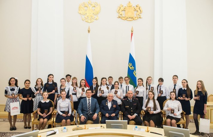 Затем лучшие школьники региона собрались в Большом зале заседаний Правительства Тюменской области . На счету каждого из них различные олимпиады, конкурсы и фестивали.Творческие, талантливые, креативные – 26 мальчиков и девочек в День Российской Конституции получили свой главный документ – паспорт гражданина Российской Федерации.