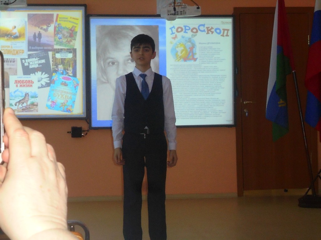 Всего в конкурсе приняли участие 17 обучающихся 5-11 классов со всех школ района, в том числе учащиеся нашей школы — Гандалоев Муслим (рассказ «Гороскоп» М. Дружинина), Русских Ангелина(«Русский характер» А. Толстой). Подготовила конкурсантов учитель русского языка и литературы Самойлова В.И.