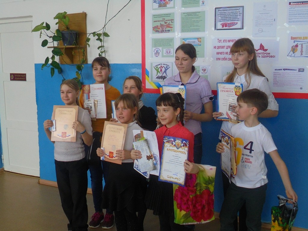 В последний день четверти состоялась традиционная школьная линейка по подведению итогов 3 учебной четверти. Учащимся вручены грамоты, дипломы за участие и победу в различного уровня мероприятиях. Учащихся познакомили с графиком работы школы в каникулярное время, проинструктировали по технике безопасности вблизи водоемов, правилам дорожного движения и противопожарной безопасности.