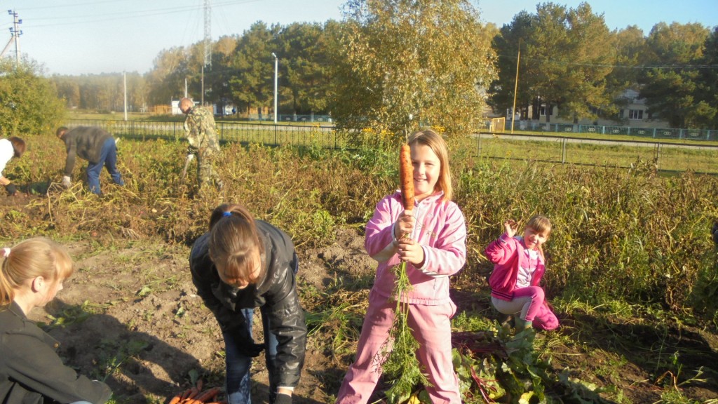 Осень — время сбора урожая. Сельскохозяйственная продукция, выращенная на школьном приусадебном участке используется для организации питания учащихся в школьной столовой, что гарантирует — без обедов ребята не останутся.