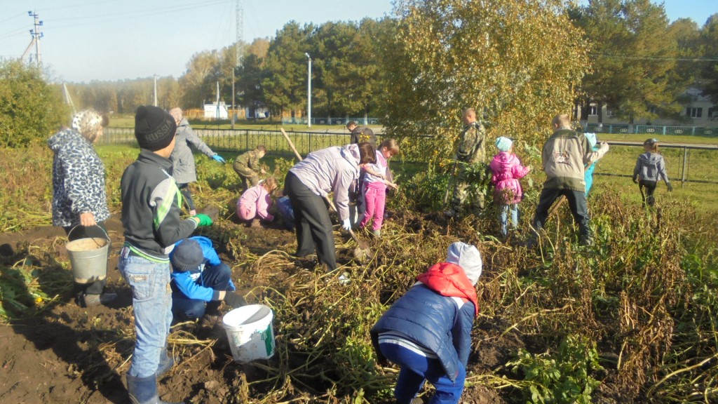 По традиции младшие школьники убирали урожай морковки и свёклы, а старшеклассники — оккупировали участок с картофелем.
