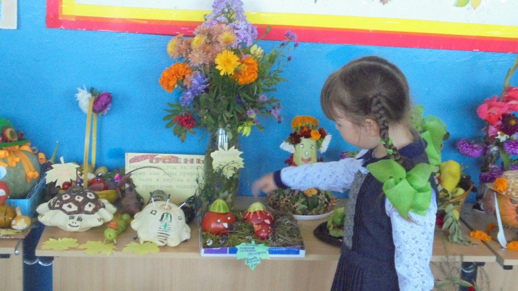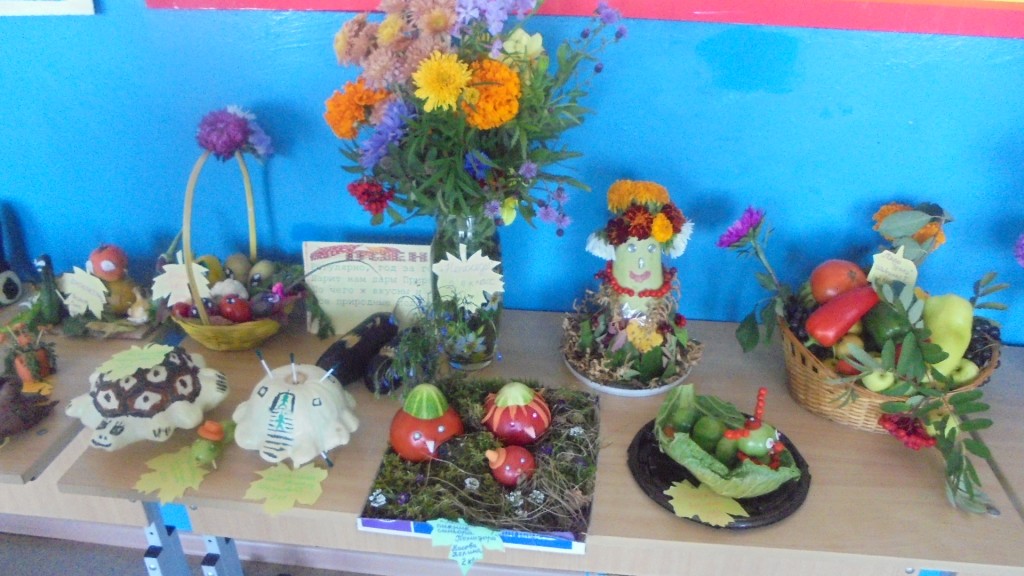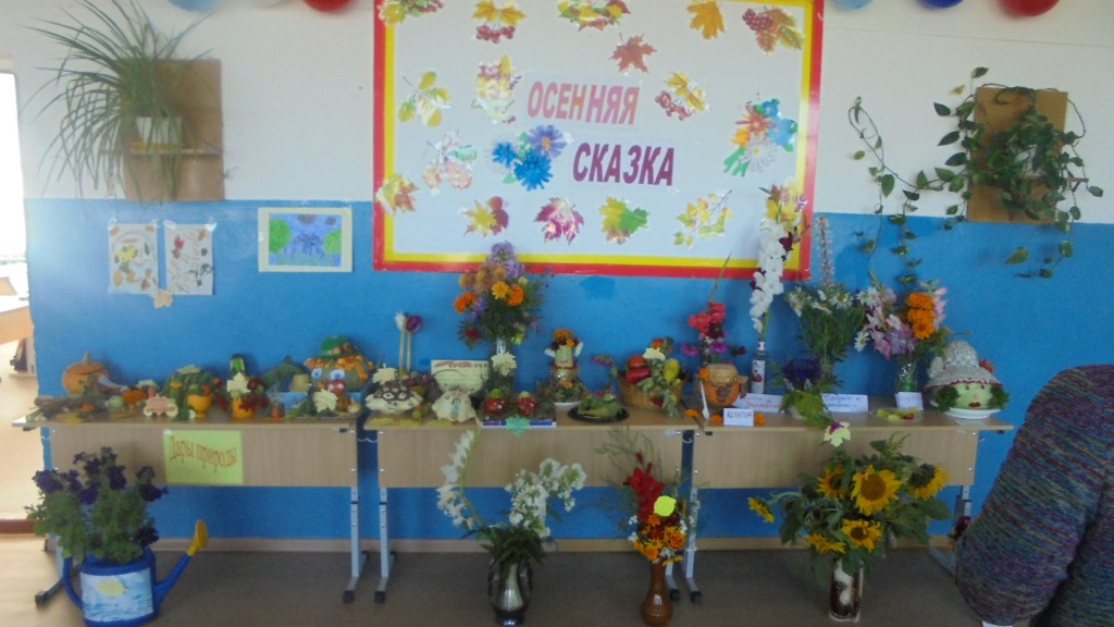 Осень не прошла незаметно и в нашей школе. С 11 по 14 сентября в нашей школе прошла выставка поделок «Осенняя сказка». Родители вместе с детьми изготовили оригинальные и гениальные поделки, используя разнообразные приемы и методы. Были представлены поделки из овощей и фруктов, листьев, шишек, мха, цветов и других видов природного материала. Все поделки, букеты, картины получились очень красочными, яркими, оригинальными, уникальными и разнообразными. На выставке было представлено более 50 работ. Возраст самого маленького участника выставки — 1 год ,а также свои работы презентовали представители Совета ветеранов.