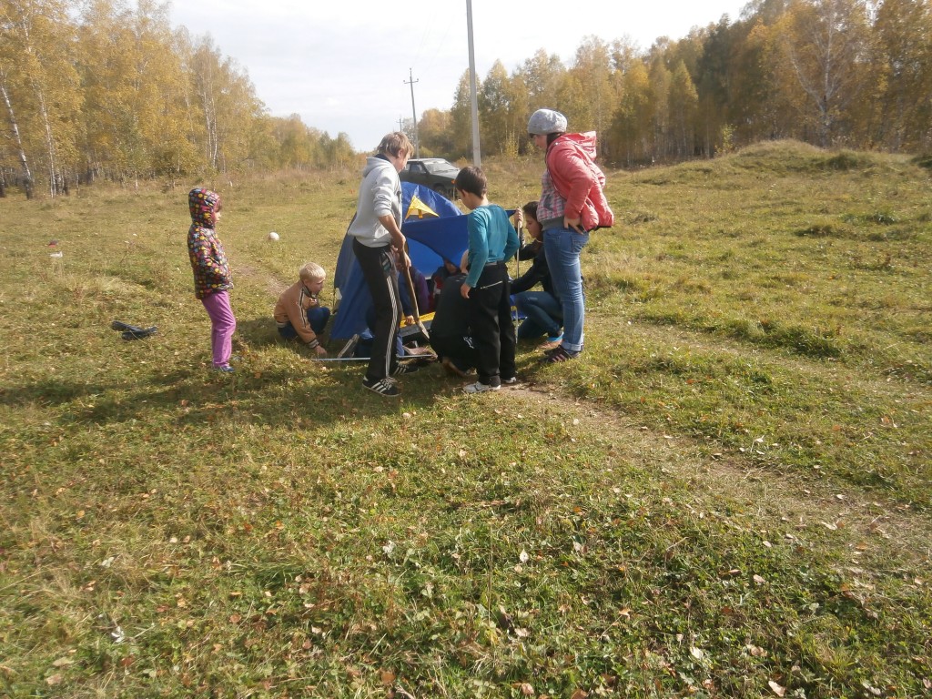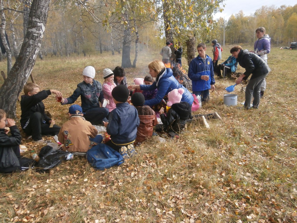 Солнечная погода способствовала приподнятому настроению ребят, толпившихся в школьном дворе в спортивной форме. Мы отпправились в поход на луг, который находится неподалёку от школы.