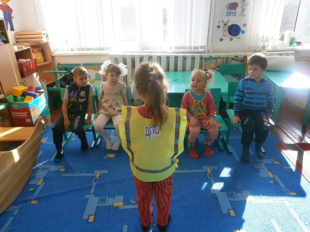 Цель мероприятия — профилактика дорожного травматизма на улицах . Ребята проигрывали ситуации, которые могут сложиться на дорогах, загадывали друг другу загадки. Воспитатель Татьяна Витальевна рассказала о правилах дорожного движения, дорожных знаках и прочих тонкостях
