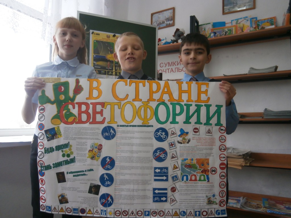 Сегодня члены отряда ЮИД устроили громкое чтение и обсуждение статей газеты «Добрая дорога детства». Ребята с интересом изучали публикации, почерпнули новые идеи по пропаганде ПДД для проведения недели ДДБ. В результате составили памятку по ПДД для школьников на время осенних каникул. Решили разместить её в информационном уголке и на сайте школы. После Русских Ангелина представила книгу «Вечно юная страна ЮИД». Огромный восторг вызвали фото и заметки о выпускниках нашей школы-победителях конкурса «Безопасное колесо».После ребята завершили работу над стенгазетой «В стране Светофории» для районного конкурса.