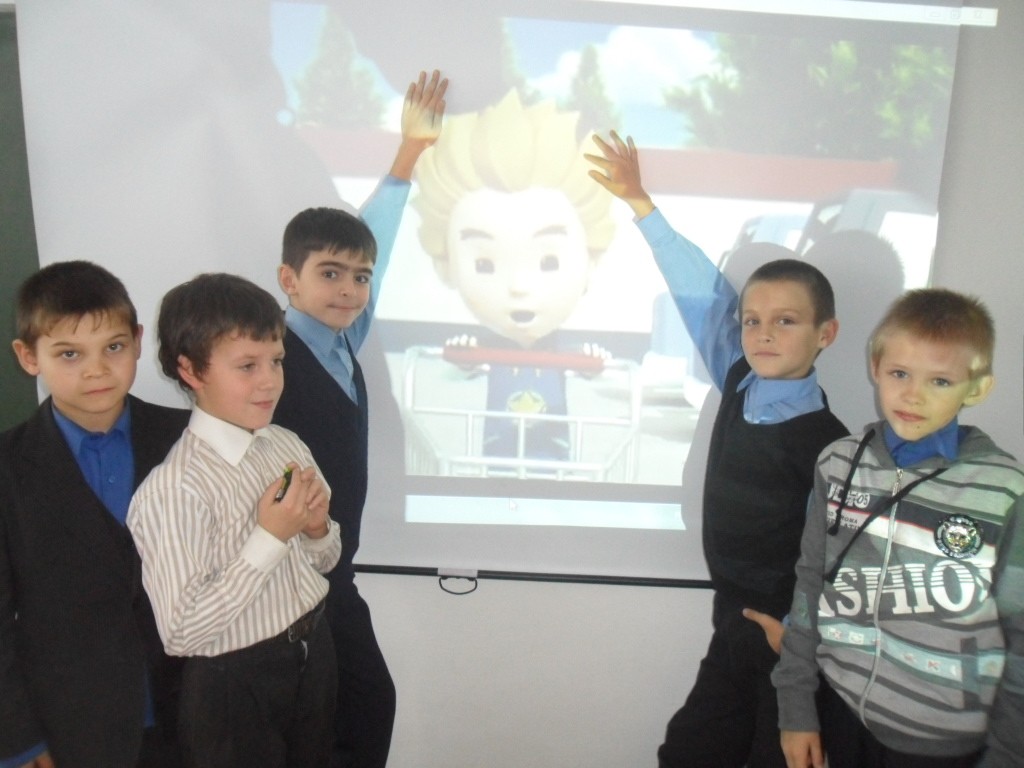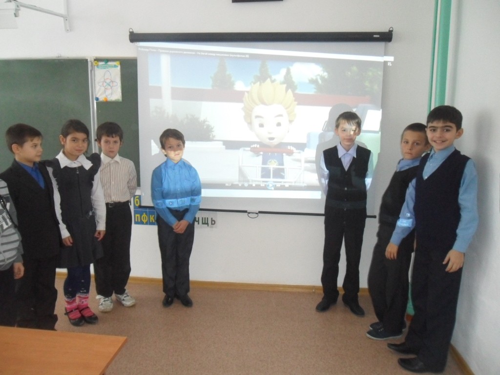 Каждый день учащиеся младших классов смотрели познавательный мультфильм по ПДД :