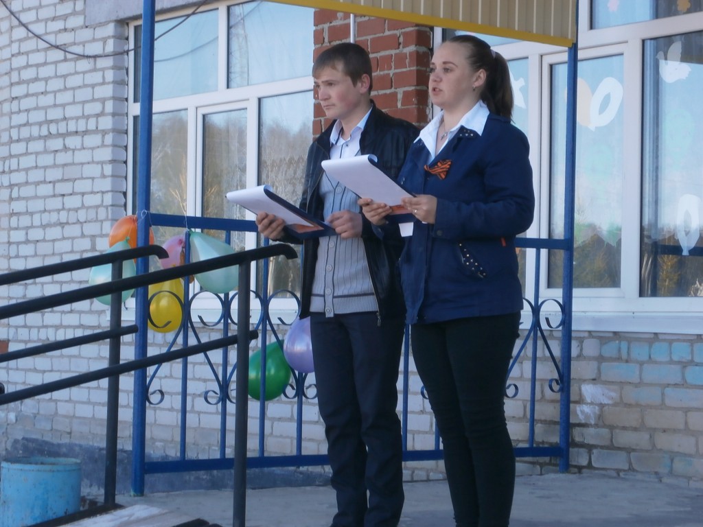 Литературно-музыкальной композицией поздравили участников митинга учащиеся школы.