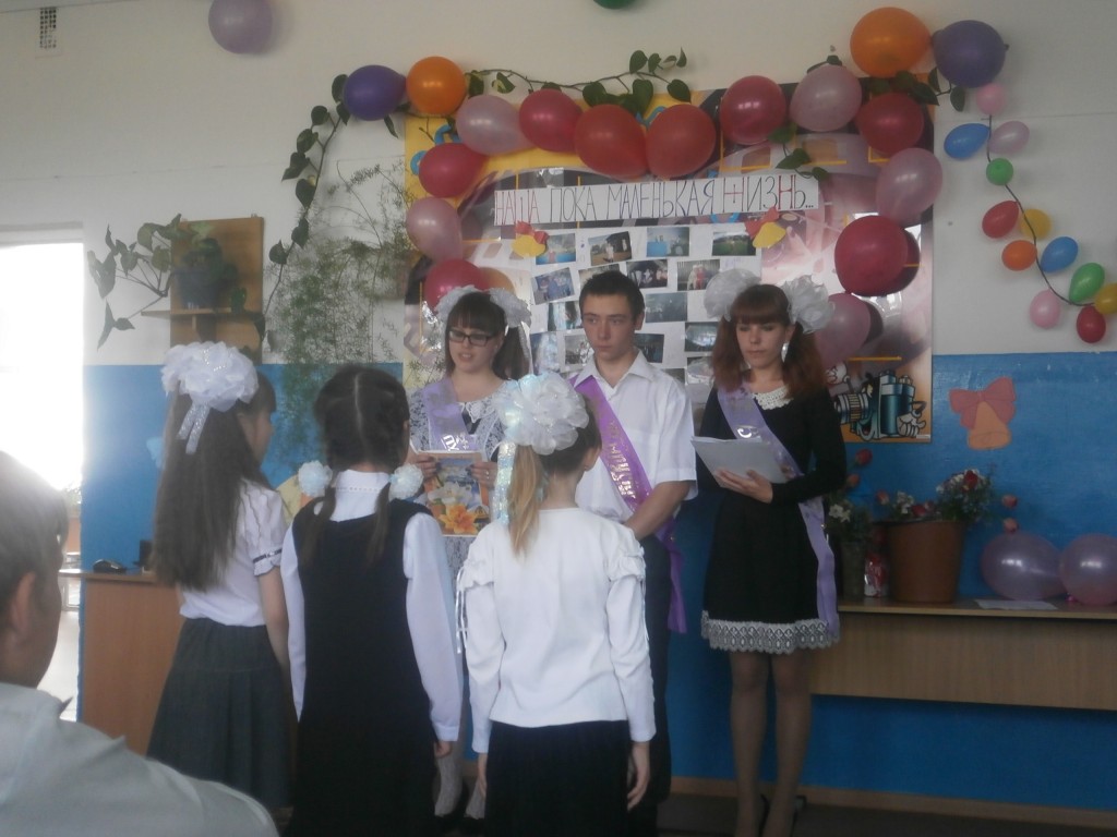 Ученики школы устроили настоящий праздник для всех присутствующих. Нарядные выпускники, прощаясь с детством, поблагодарили своих любимых учителей, читали стихи, пели песни об учителях и школе. В конце своего выступления ребята станцевали вальс.