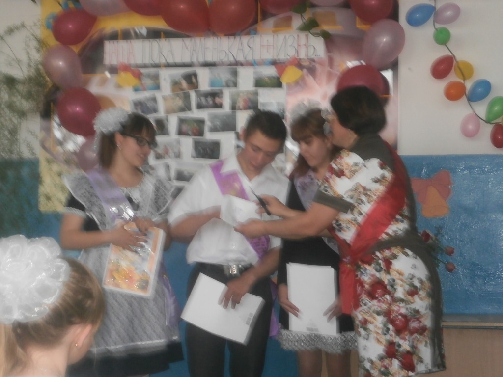 С добрыми напутствиями к ребятам обратилась заведующая филиалом Демина Е.А., классный руководитель Насникова О.А., первая учительница Ковалец С.В., директор СДК Арканова И.А., все пожелали ребятам успеха в достижении главной цели в жизни.