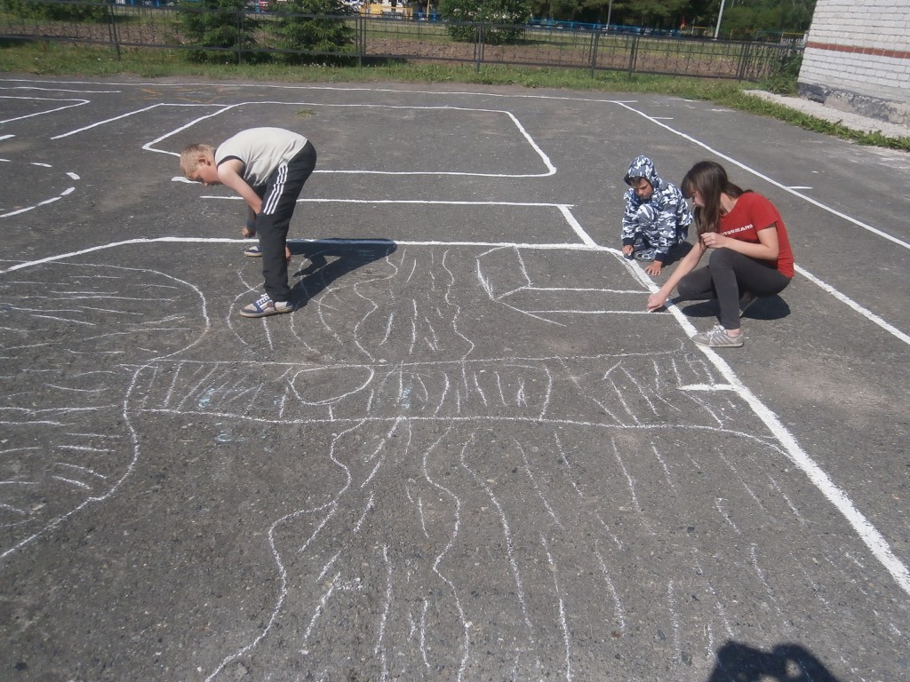 В ходе экологического десанта, ребята делали фотографии села, а позднее организовали фотовыставку и оставили признания в любви родному краю на асфальте.