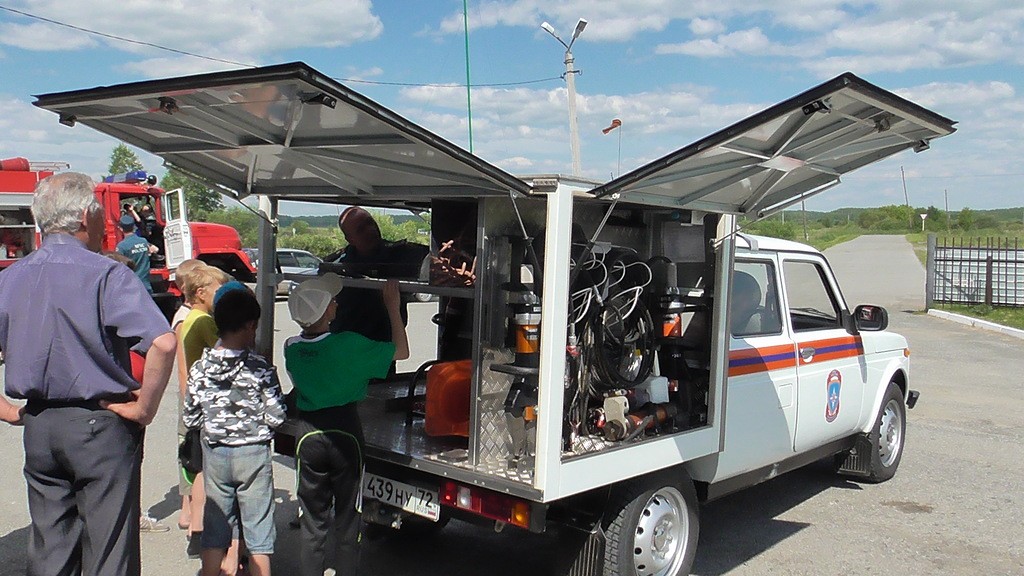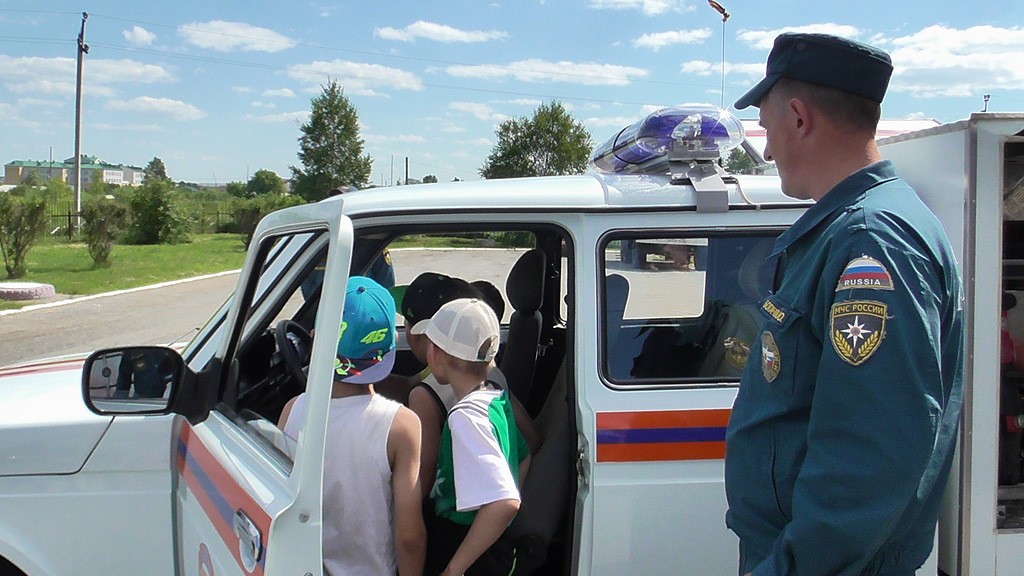 Затем мы отправились на экскурсию в пожарную часть.Огнеборцы показали мальчишкам и девчонкам, где в машине при следовании к месту вызова размещаются бойцы, как в специальных отсеках хранятся спасательные инструменты, стволы и скатки пожарных рукавов.