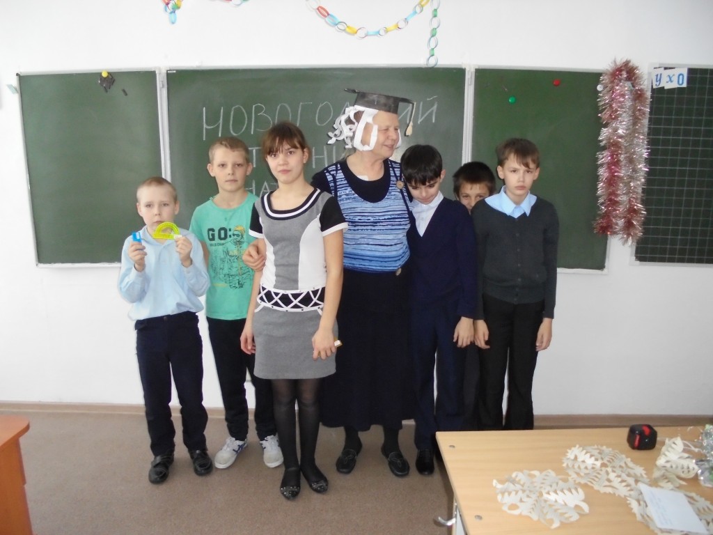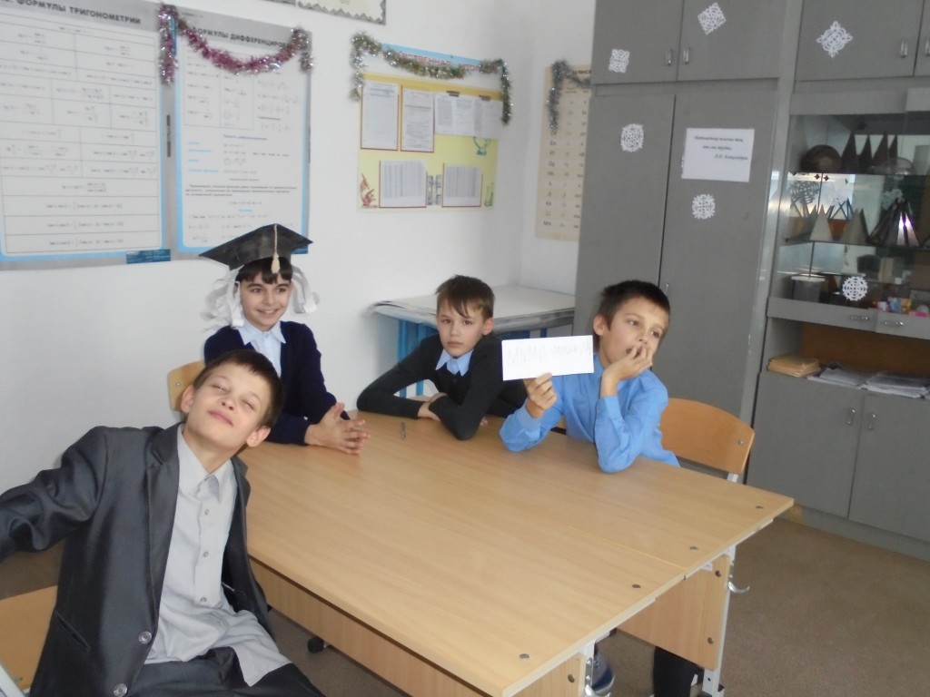 Сегодня на итоговом занятии кружка «Занимательная математика» проведен Новогодний турнир знатоков. Руководитель кружка Катунова А.М. и кружковцы заранее нарядили классную комнату. Разделившись на 2 команды, ребята приступили к выполнению заданий: собрать новогоднюю открытку, записать год своего рождения римскими, греческими, индийскими цифрами, подсчитать геометрические фигуры и многое другое. Учащиеся 5-7 классов показали чему они смогли научиться на кружке и как это им помогло в освоении такой сложной науки , как «математика».