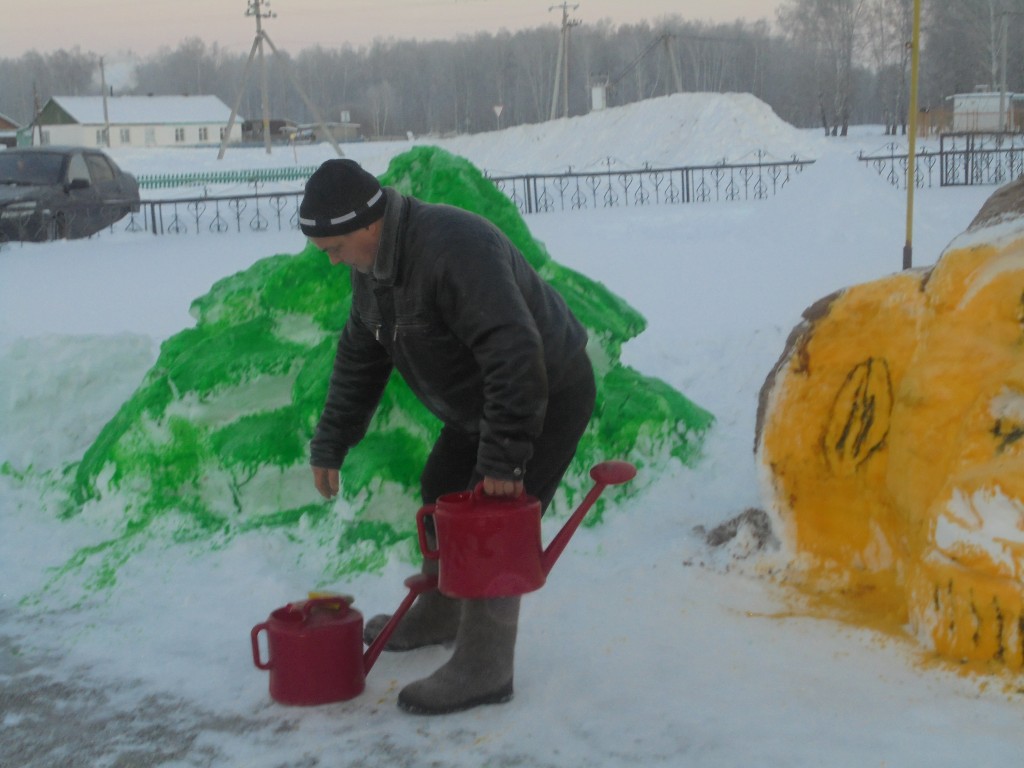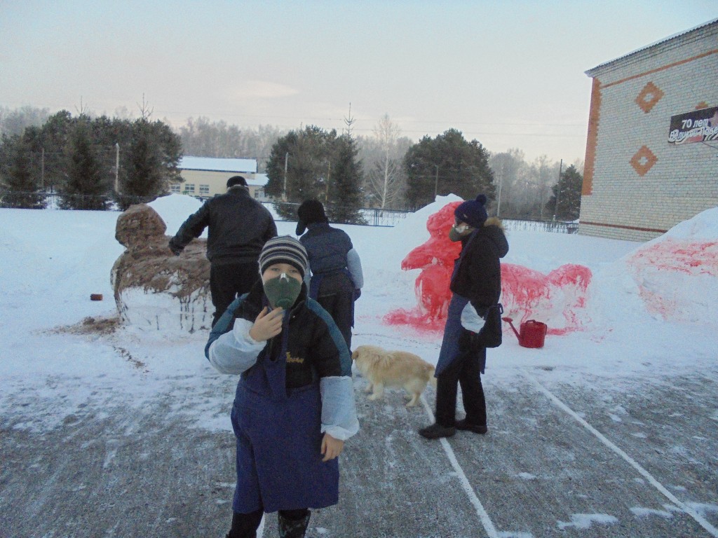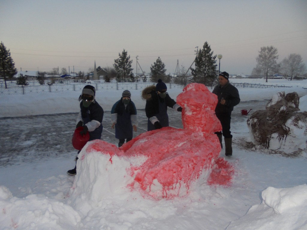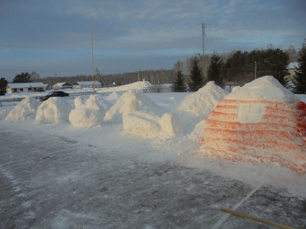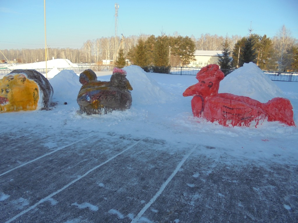 Вот уже который год подряд на радость всем жителям на школьном дворе проходит снежная акция «Снежный городок» с целью создания игровой площадки для детворы, а также воспитания у молодого поколения любви к созидательному труду. Несмотря на морозы нашлись неравнодушные люди и проявили инициативу в создании небольшого снежного городка для поднятия настроения взрослым и детям. Вооружившись лопатами, лейками и красками приступили к воплощению своих снежных задумок. Прошло совсем немного времени и сугробы снега превратились в удивительные снежные шедевры. Появилась новогодняя ёлочка , петушок и курица, символ уходящего года-обезьяна, снежные домики.