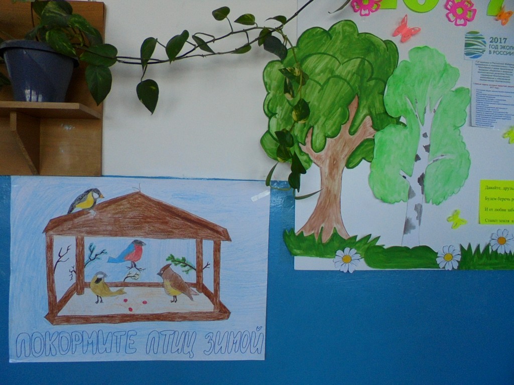 Учащиеся 7 класса тоже присоединились к акции и нарисовали рекламные плакаты с призывами позаботиться о пернатых.