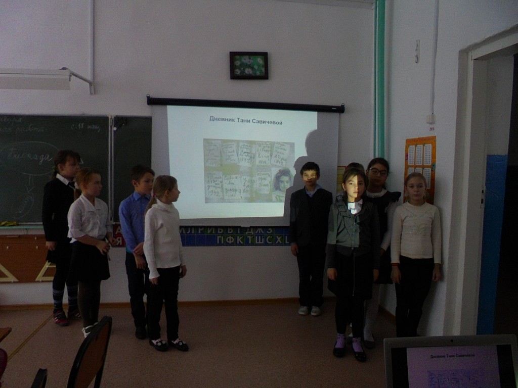 Для учащихся 2-4 классов Ковалец С.В. провела Урок памяти «Дети блокадного Ленинграда». Она рассказала о неимоверных лишениях и трудностях, выпавших на долю жителей города, о детях и школах блокадного города, о нормах выдачи хлеба, о болезнях дистрофии и цинге, о «дороге жизни», о мужестве рабочих заводов и фабрик, о прорыве блокады и операции «Искра». В заключении состоялось громкое чтение рассказа Н. Богданова «Бессмертный горнист».